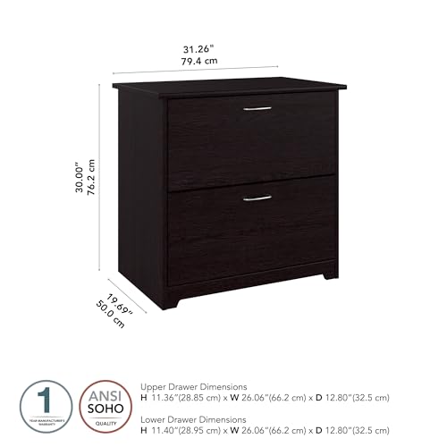 Bush Furniture Cabot 2 Drawer Lateral File Cabinet in Espresso Oak, Letter, Legal, and A4-size Document Storage for Home Office