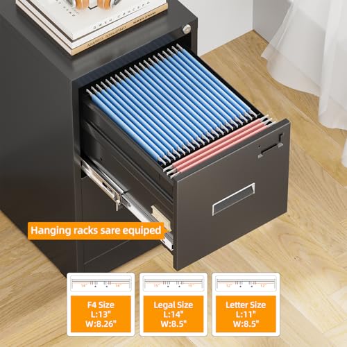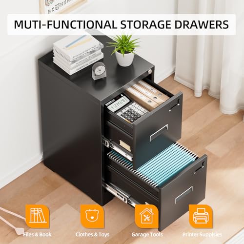 【Stable Construction】: Metal file cabinets are made of thicker cold-rolled metal material, more durable for long term use. Also, 2 drawer filing cabinet is designed with anti-tilt locking system, which means that 1 lock with 2 keys can lock all drawers, preventing other drawers sliding out and fix cabinets