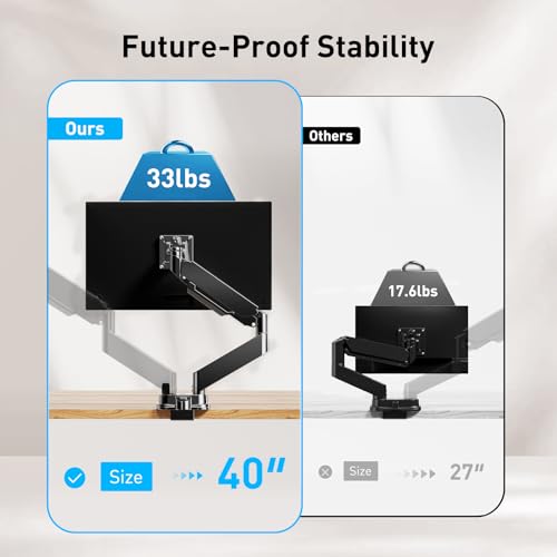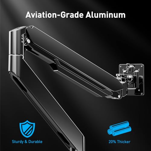 Increased Stability & Durability: Crafted with premium aviation-grade aluminum, our dual monitor arm can securely hold monitors up to 33 lbs. The advanced full motion adjustment mechanisms on this dual monitor mount have been tested to withstand 20,000 lift cycles for long-lasting performance.