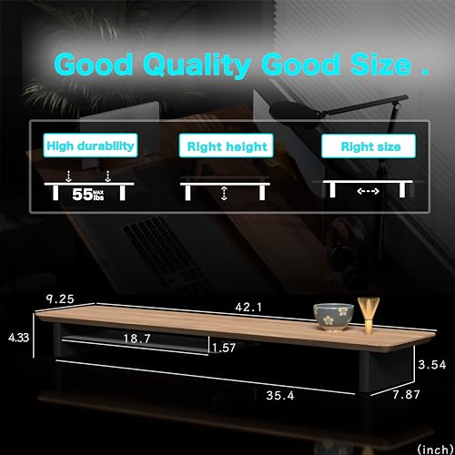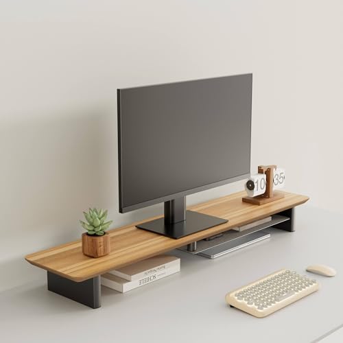 Large Wood Desk Shelf / Dual Monitor Stand / Computer Monitor Riser Desk Stand / Wooden monitor stand for desk 2 monitors (WhiteOak)