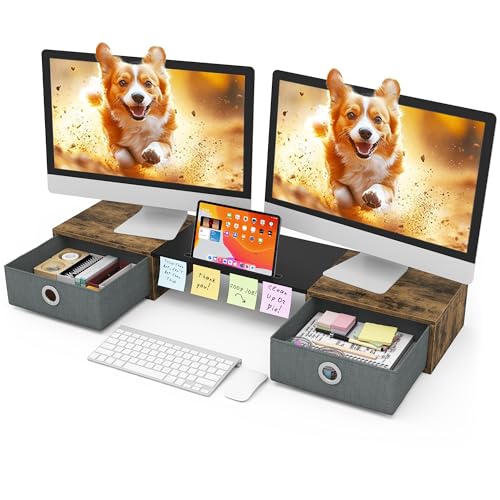WESTREE Dual Monitor Stand Riser with Two Drawers, Extra Large Storage for 2 Monitors, Desktop Oraganizer Computer,Laptop,Screen,Printer,TV