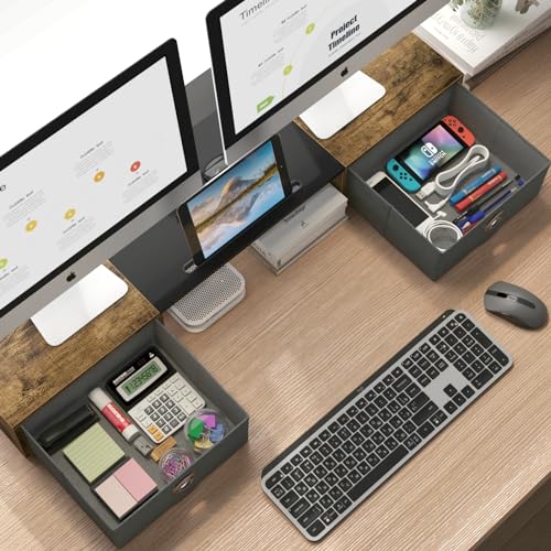 【Monitor Stand with 2 Drawers】Our computer monitor riser includes slide-out drawers, for storing items like post-it notes, writing utensils and mobile devices