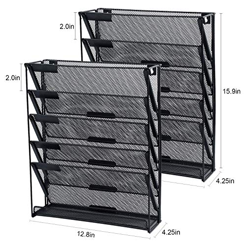 samstar 2 Pack Wall File Organizer, 6-Tier Wall Mount Paper Holder Vertical File Rack for Office Home, Black.