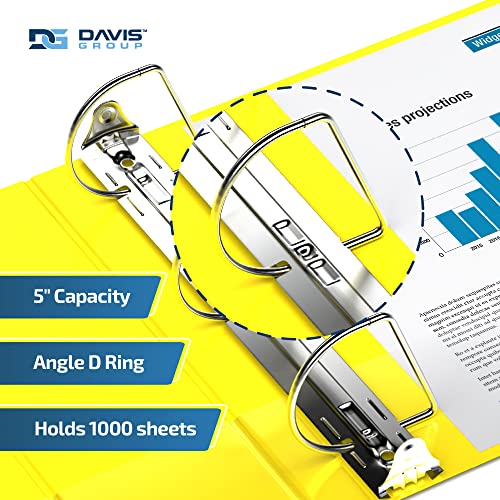 EasyView Premium Angled D-Ring 5-Inch Binders with Clear-View Covers, Customizable 3-Ring Binders for School, Office, or Home, Pack of 4, Yellow