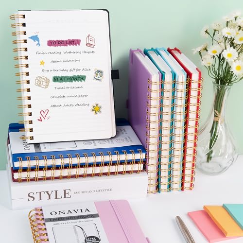 【Ideal Gift Choice】ONAVIA a5 hardcover spiral notebook with pen holder is perfect for schools, business places, offices, work, home and traveling. It can be used as personal writing diary for men and women. A special and perfect gift you can share with friends and family. Get ready for back to school with our 8 pack of lined sprial journal notebooks, offering ample space for all your note-taking needs.