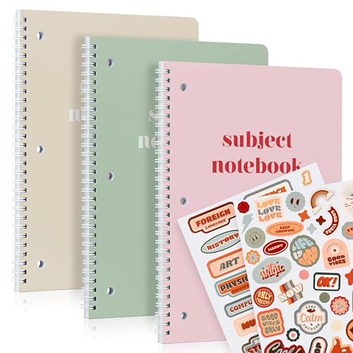 ZICOTO Aesthetic Spiral Subject Notebook Set of 3 For School or College – The Perfect 8″ x 10.5″ College Ruled Notebook with Premium Paper – Cute Student Supplies to Stay Organized at School