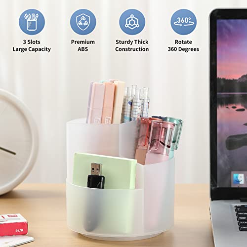 Desk Pencil Pen Holder, 3 Slots 360-Degree Spinning Pencil Pen Desk Organizers, Desktop Storage Pen Organizers Stationery Supplies, Cute Pencil Cup Pot for Office, School, Art Supply – Clear
