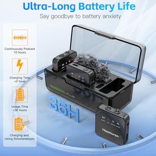 【Extended 36-Hour Battery Life】 Optimized for power efficiency, this wireless lapel microphone for iPhone series iPhone16 operates for up to 10 hours on a single charge. The compact charging case fully charges the set twice, with each charge taking less than 2 hours. With the portable charging case, the system boasts a 36-hour battery life, eliminating worries about low battery during use.